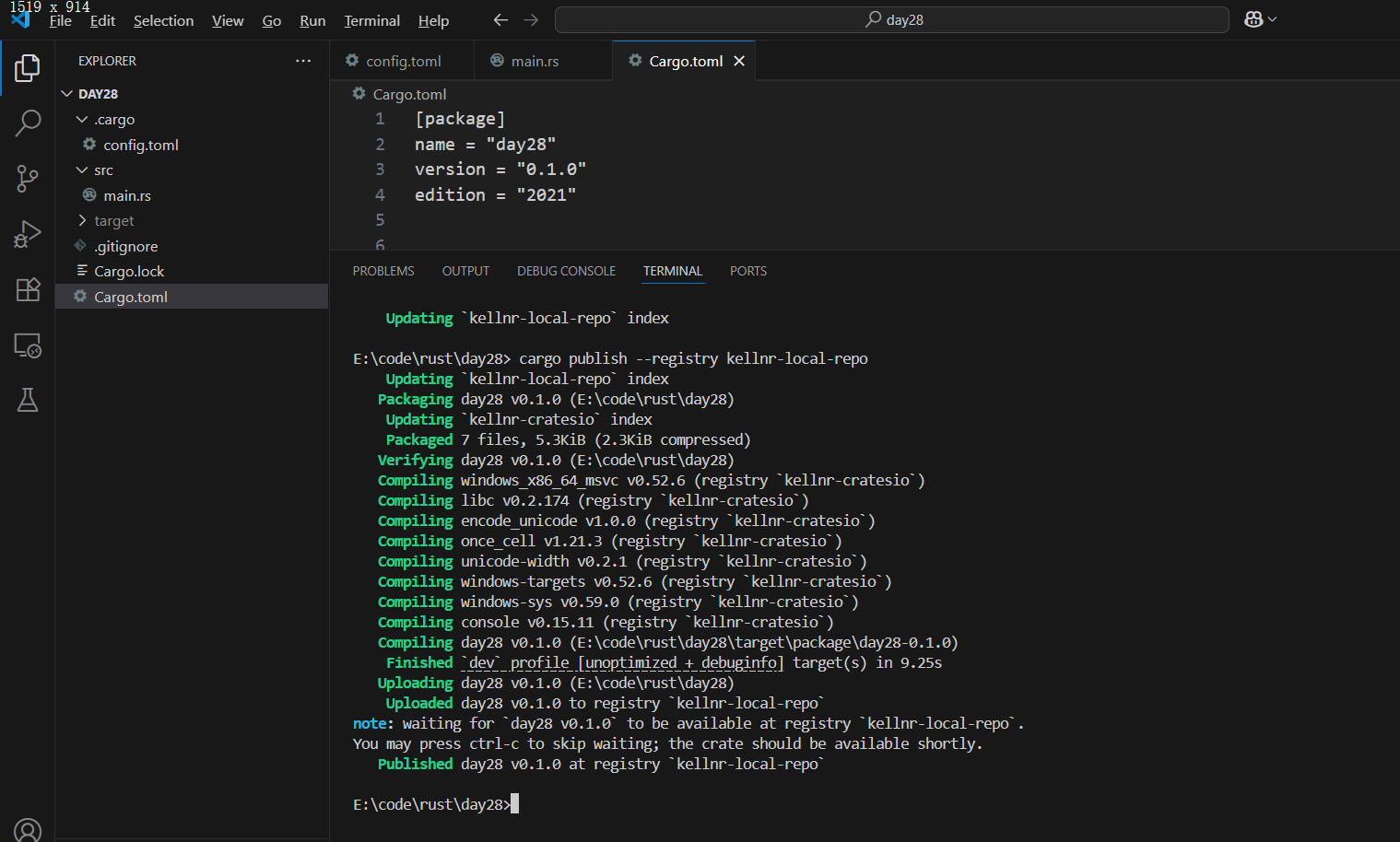 | cd /d E:\code\rust cargo new day28