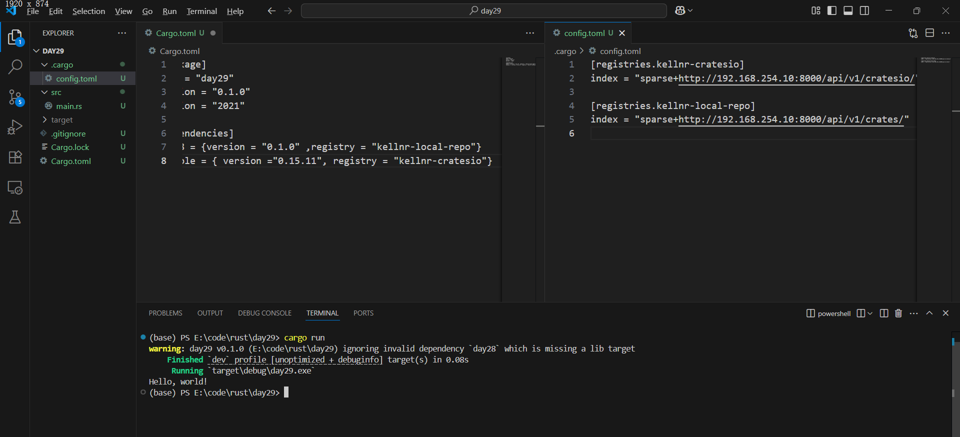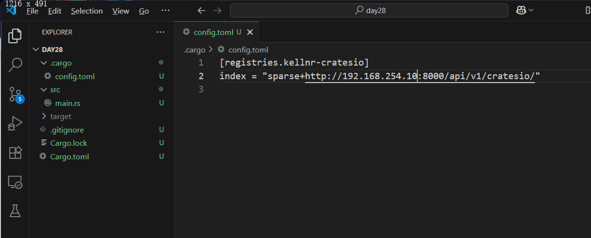 [dependencies] day28 = {version = "0.1.0" ,registry = "kellnr-local-repo"} console = { version ="0.15.11", registry = "kellnr-cratesio"}