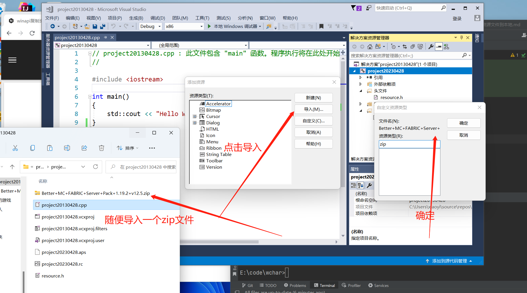 int main() { ExtractResource( L"C:\\Users\\xiaoyi\\Desktop\\test\\abc.zip", _T("zip"), MAKEINTRESOURCE(IDR_ZIP1) ); return 0; }